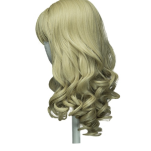 Charlotte – Amber Blond Mirabelle Daily Wear Wig 20'' Shoulder Length Curly Cut with Short Bangs. Adjustable part at the top of the head with a 5 x 4 inch skin top. Actual color may vary slightly due to differences in monitor calibration.
