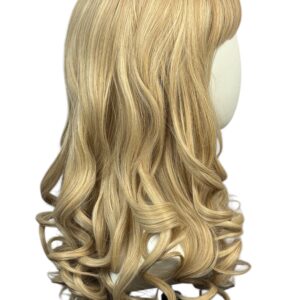 Charlotte – Dirty Blond Wig 20'' Shoulder Length Curly Cut with Short Bangs. Adjustable part at the top of the head with a 5 x 4 inch skin top. Actual color may vary slightly due to differences in monitor calibration.