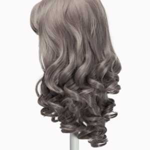 Charlotte – Grape Purple Mirabelle Daily Wear Wig 20'' Shoulder Length Curly Cut with Short Bangs. Adjustable part at the top of the head with a 5 x 4 inch skin top. Actual color may vary slightly due to differences in monitor calibration.