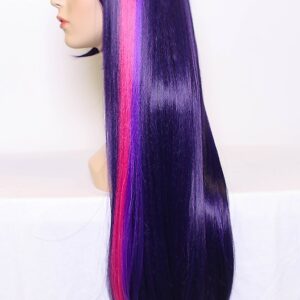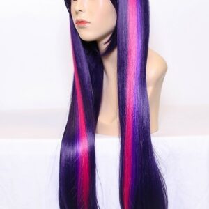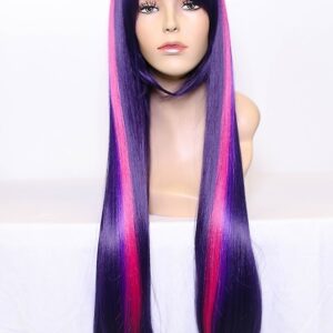 Here we have a long, straight wig with contrasting colored streaks. Features long side bangs for styling versatility.
